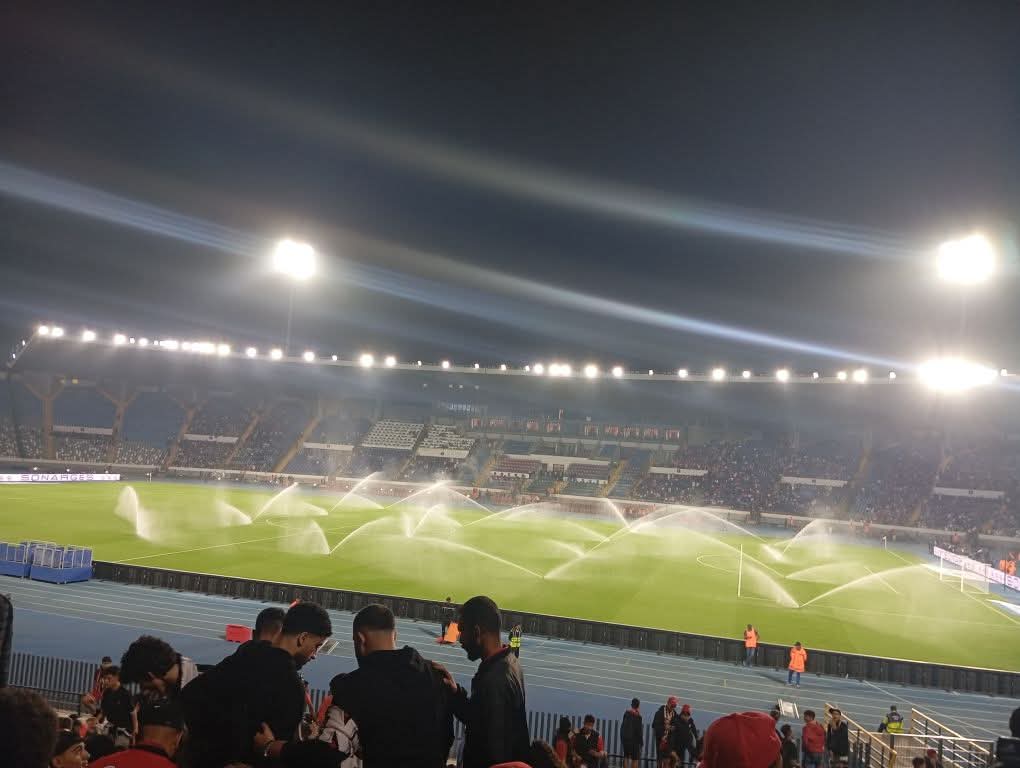 وأوضح كريم الكلايبي، أن الأمر “لا يتعلق بعملية سقي بالماء، وإنما رمل يستخدم لتسوية السطح مع تعزيز الاستواء في الملعب”.