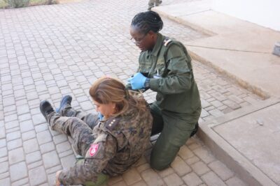 كما شمل التدريب تمارين تطبيقية ومحاكاة لبيئة عمليات واقعية، مكّنت المستفيدين من تعزيز مهاراتهم العملية وقدراتهم على التنسيق داخل الفرق الطبية العسكرية متعددة التخصصات، إضافة إلى التمكين من التكفّل بالمصابين وفق المعايير الدولية المعتمدة.