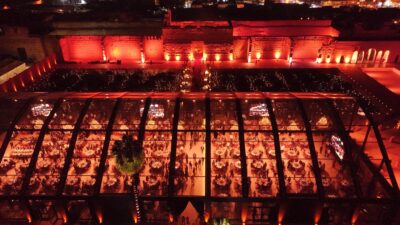 وقد تم تنظيم مأدبة العشاء بقصر البديع التاريخي، في جو يطبعه الكرم المغربي وعراقة المكان، مما أضفى على هذا الحفل بهجة كبيرة وأصالة متميزة جعلت الحضور يغوص في مختلف مظاهر التنوع الثقافي والفني المغربي.