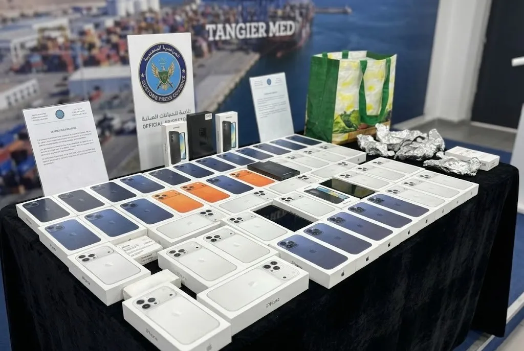 ويتعلق الأمر بحوالي 58 هاتف من نوع “آيفون 17”، كانوا داخل أمتعة راكب قادم من ميناء الجزيرة الخضراء، حيث قدرت القيمة الإجمالية للمحجوزات بحوالي 440 ألف درهم.