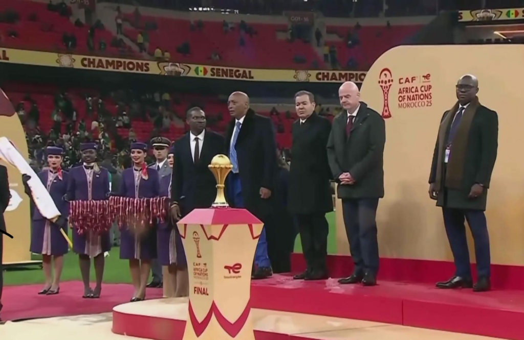 وهكذا، سلم صاحب السمو الملكي الأمير مولاي رشيد كأس إفريقيا للأمم لعميد المنتخب السينغالي بحضور رئيسي الاتحاد الدولي لكرة القدم والكونفدرالية الإفريقية لكرة القدم.