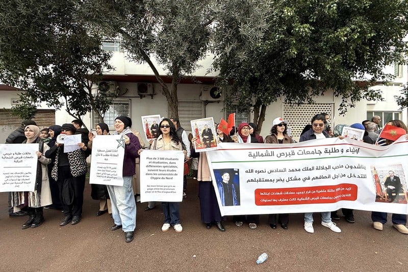 عاد عشرات الطلبة والخريجين المغاربة من جامعات قبرص الشمالية، إلى الاحتجاج أمام مقر وزارة التعليم العالي والبحث العلمي والابتكار بالرباط، للمطالبة بمعادلة شواهدهم الجامعية، بعد قرار تجميد المعادلة منذ منتصف سنة 2024، والذي وصفوه بـ”المفاجئ” وأثر سلبا على مستقبلهم المهني.