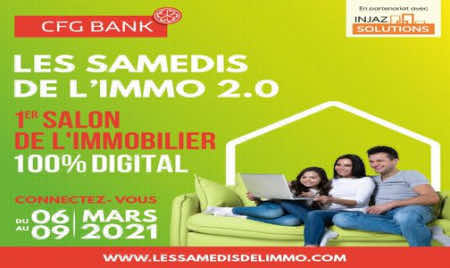 ينظم بنك ” CFG” المغرب، بشراكة مع شركة « Injaz Solutions »، أول سلسلة لقاءات افتراضية بالمغرب خاصة بمجال العقارات، وذلك في الفترة ما بين 6 و9 مارس الجاري.