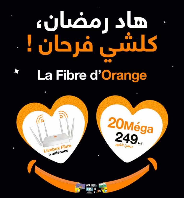 أعلنت أورنج إطلاق عرض الألياف البصرية ب20 ميغا بسعر 249 درهم للشهر فقط. وللاحتفال بانطلاقة هذا العرض الفريد، أورنج تمنح تركيبا مجانيا.