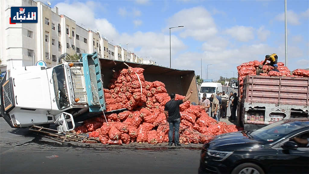 انقلاب شاحنة لنقل البطاطس وسط الدار البيضاء..مشاهد صادمة