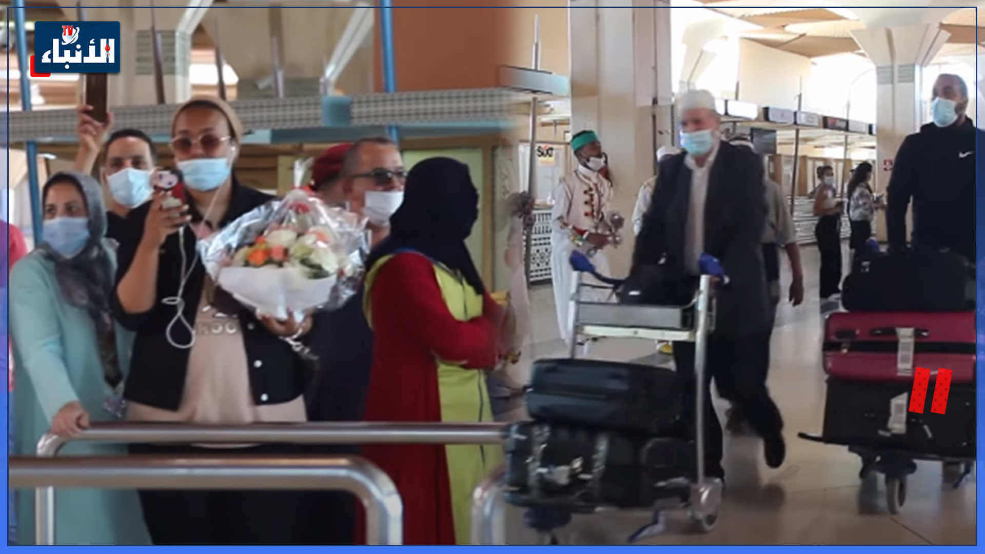 بالورد والموسقي..مغاربة يستقبلون أحبابهم العائدين عبر مطار المسيرة